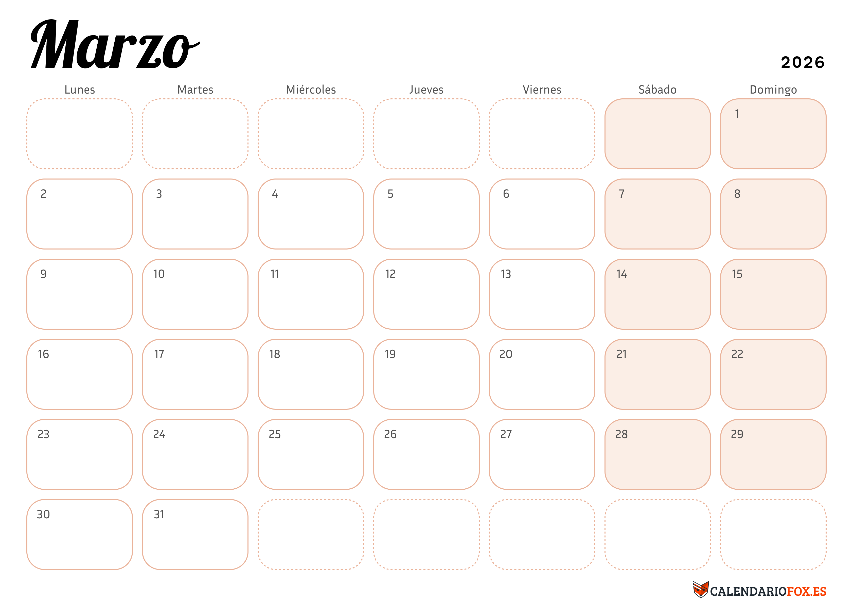 Organiza tu mes con el Calendario Marzo 2026 de Calendariofox.es. Incluye festivos españoles como Año Nuevo y Epifanía, sección de hábitos, prioridades, lista de tareas y espacio para objetivos mensuales y gratitud.